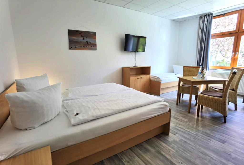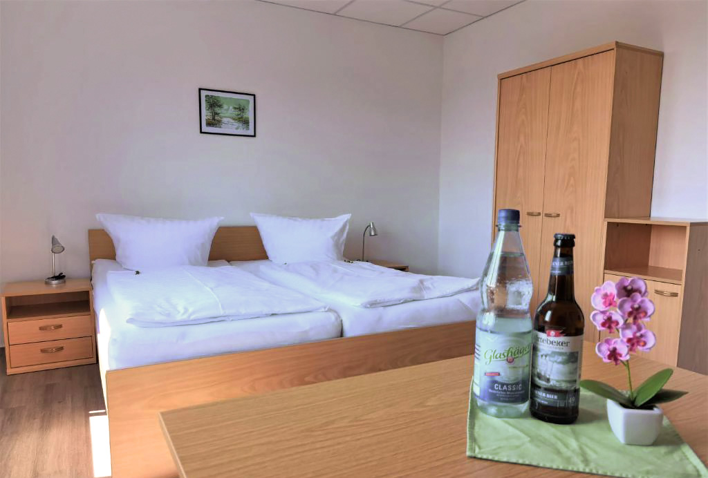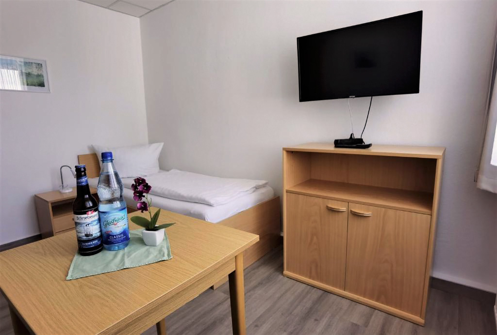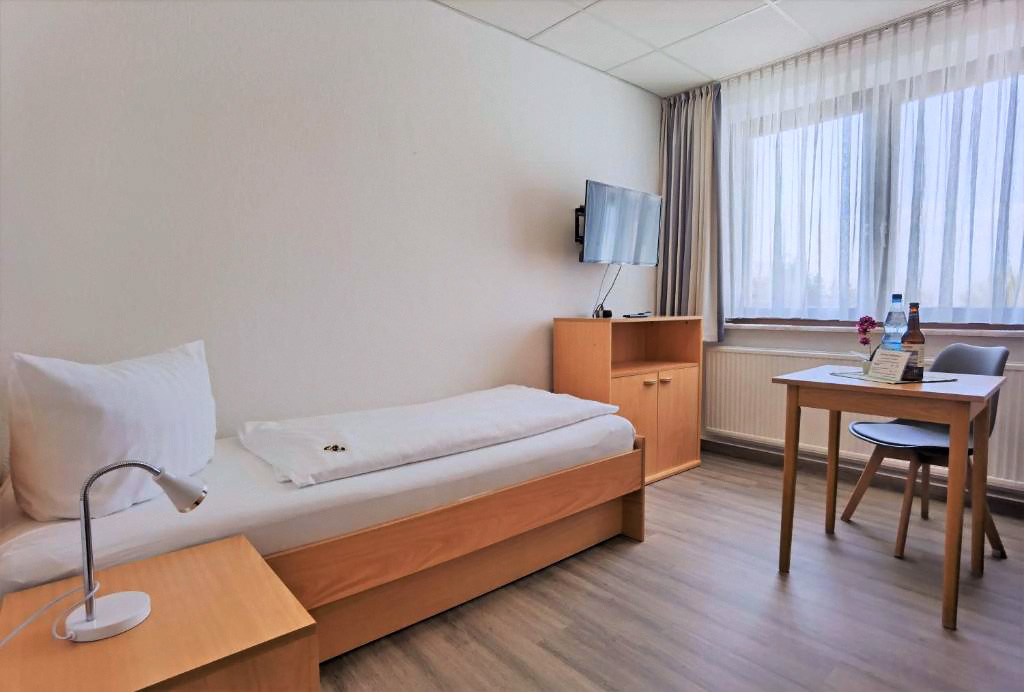 Das Einzelzimmer ist ca. 15 m² groß und bietet Platz für 1 Erwachsenen – 1 Kind im Aufbett (Klappcouch) möglich