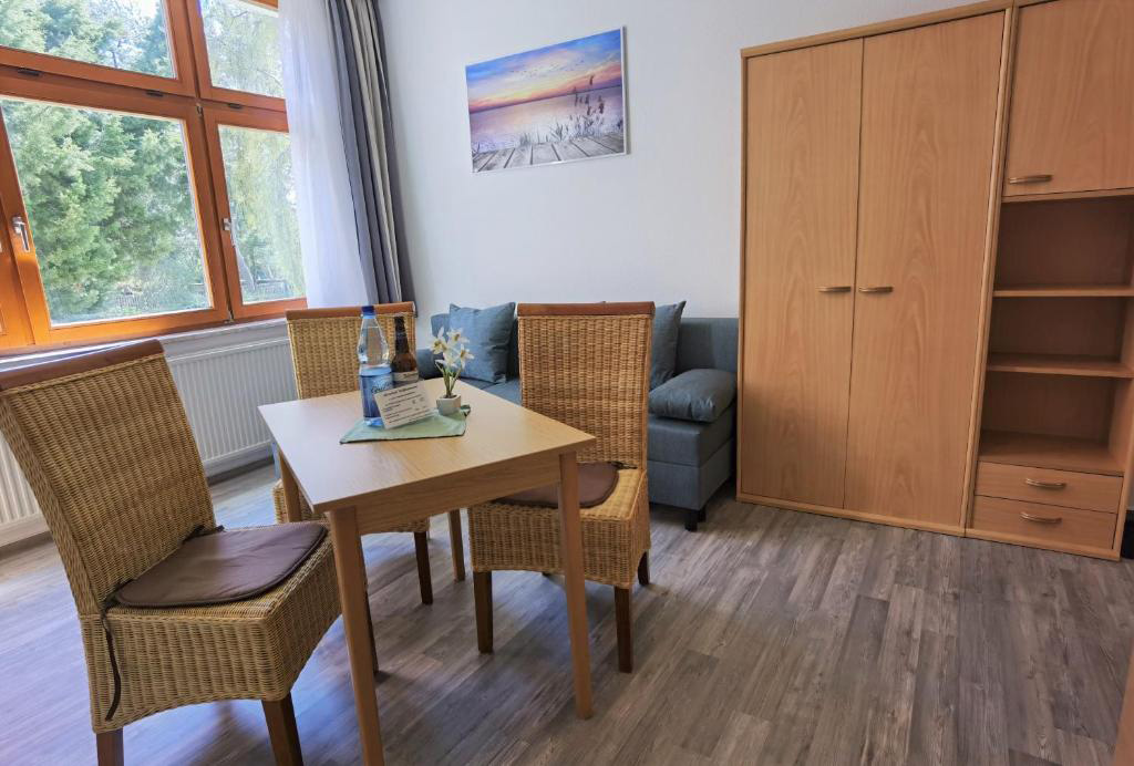 Im Preis enthalten sind die Nutzung einer Miniküche mit Kühlschrank und Geschirr.
